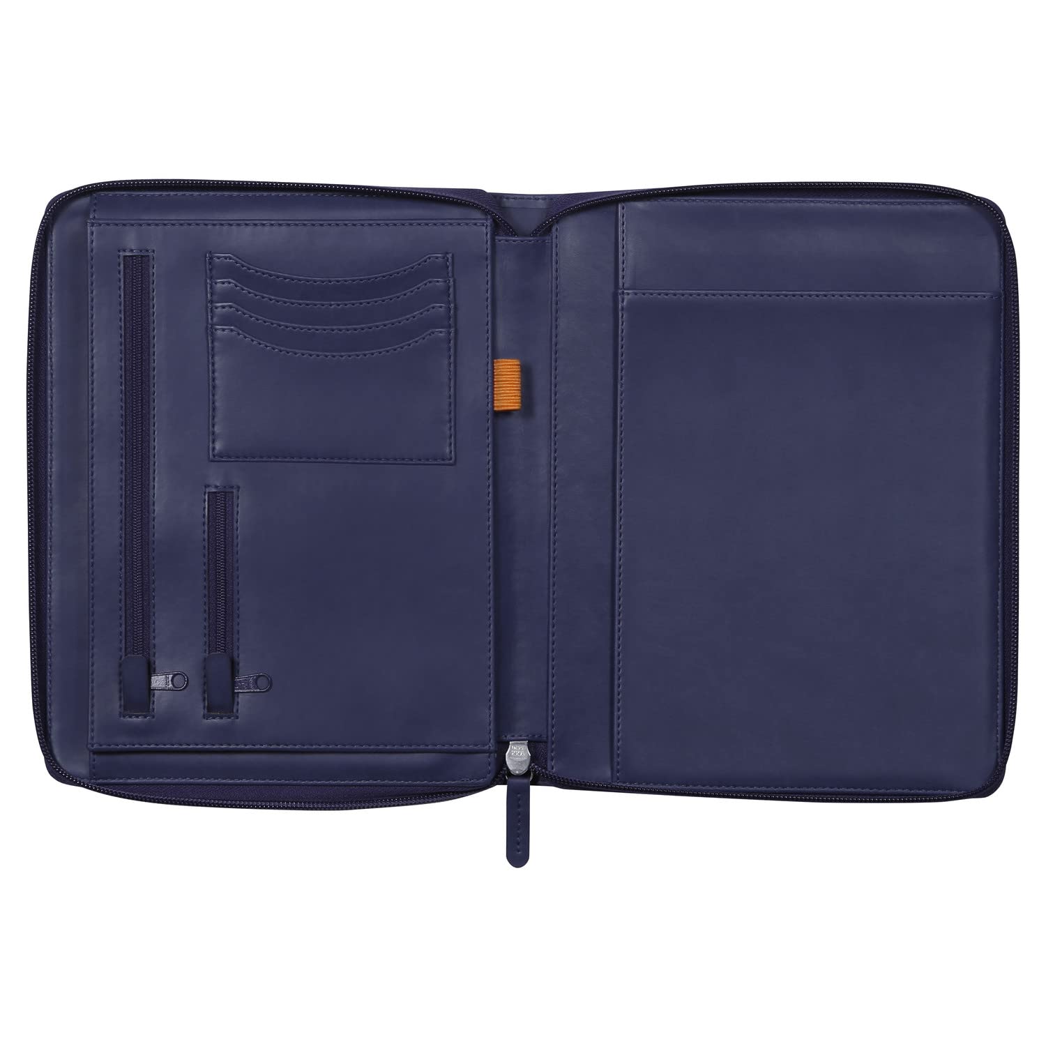 Rhodia 168104C - Rhodiarama Small Leatherette Zipped Portfolio for Notepad or Tablet 19.5x25.5cm gusseted Tablet Pocket 2 Zipped Pockets Card Holder Pencil Holder - Midnight Blue