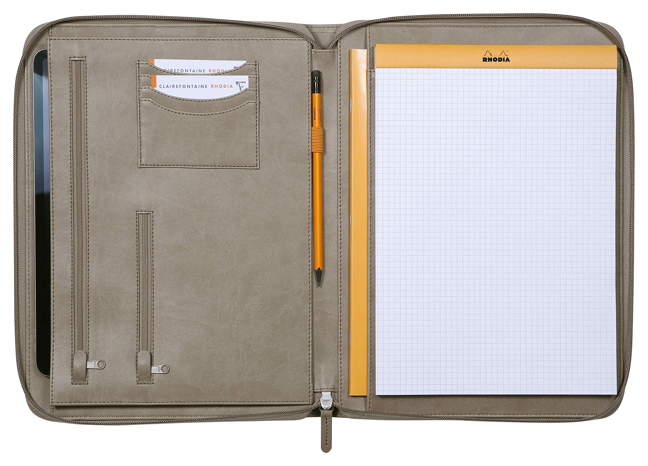 Rhodia 168117C - Rhodiarama Large Leatherette Zipped Portfolio for Notepad or Tablet 25.5x34cm gusseted Pocket for Tablet 2 Zipped Pockets Card Holder Pencil Holder - Taupe