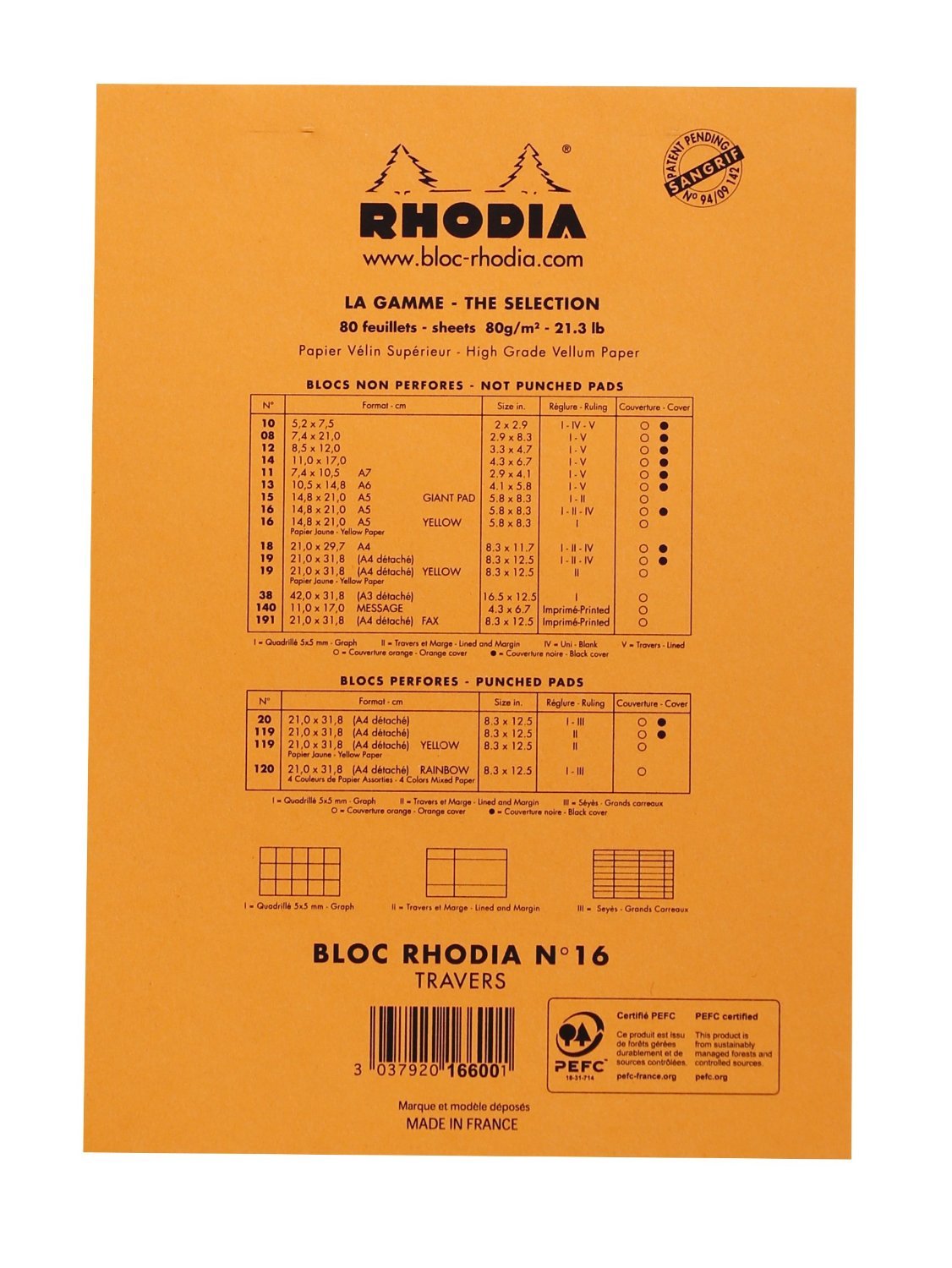 Rhodia Classic Orange Notepad lined - 6 in. x 8-1/4 in, Pack of 3—