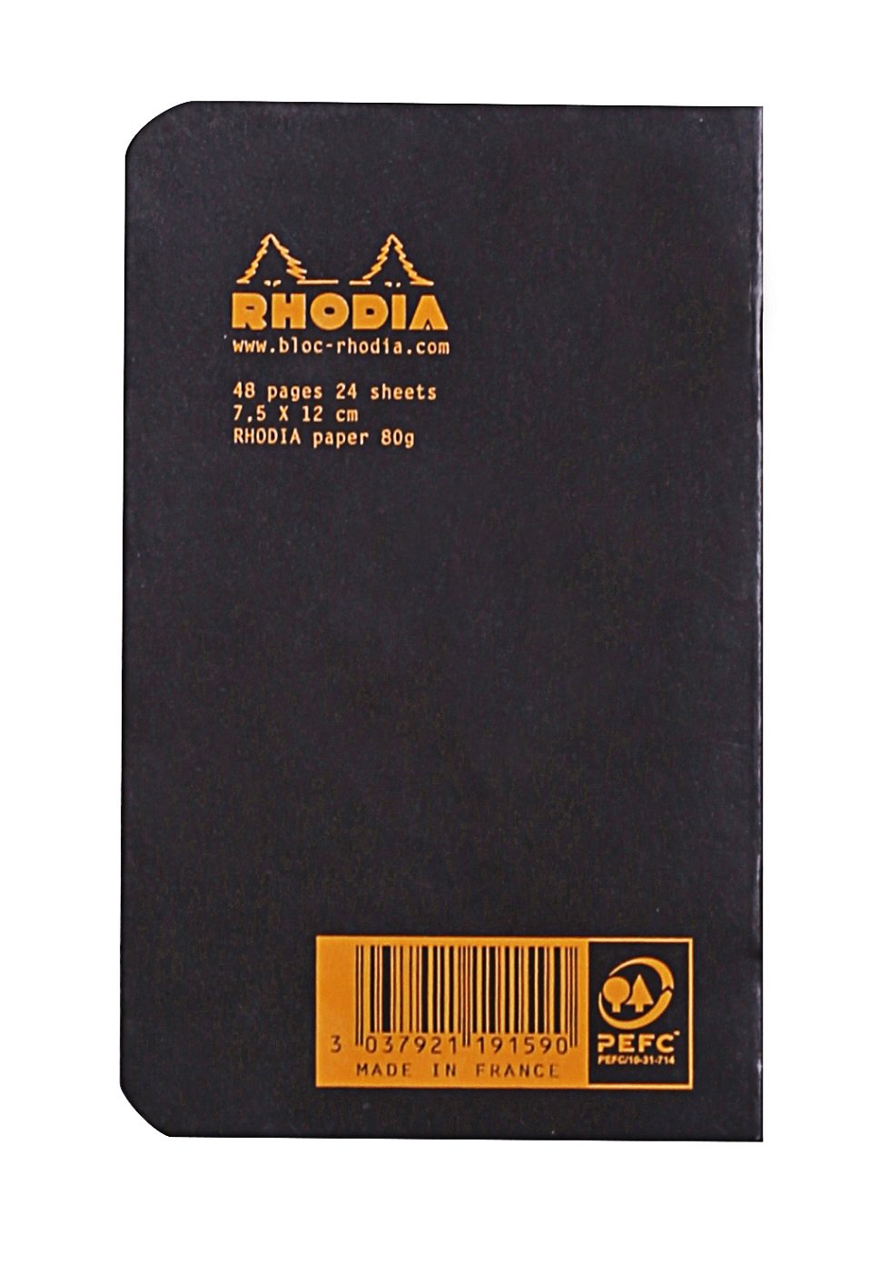 Rhodia Slim Staplebound Notebooks - Graph 48 sheets - 3 x 4 3/4 in. - Black cover